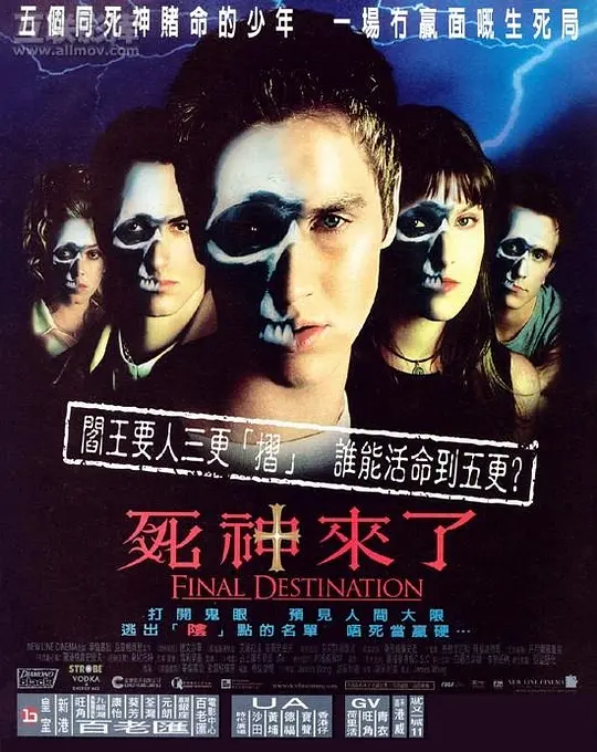 剧情惊险恐怖,环环相扣。高中生艾利克斯-伯朗宁(德文•萨瓦 Devon Sawa 饰)与7名同班同学登机前往巴黎。起飞前,他突然预感到恐怖的一幕:飞机将会在空中爆炸。艾利克斯非常惊恐,大喊飞机即将出事,大家要立刻下机,结果混乱中他和其余6名乘客被机组人员赶了出来。但是,被艾利克斯不幸言中,飞机在半空中爆炸,全部人员罹难。 所有下了机的人都在庆幸大难不死,却不知死神还是不愿放过他们。接下来,等待他们的将会是更恐怖的死亡方式和更难逃脱的死亡命运。而艾利克斯又能从各人的死亡顺序里面发现什么秘密,在死神的魔爪中逃出生天?收起